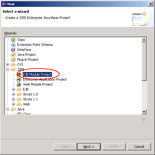 Create a new EJB Module Project. Right click on the package explorer or with shortcut �Strg + n�.