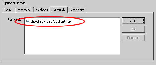 Choose Use Case default and Action Type Forward. The Forward Path is the welcome page /jsp/index.jsp