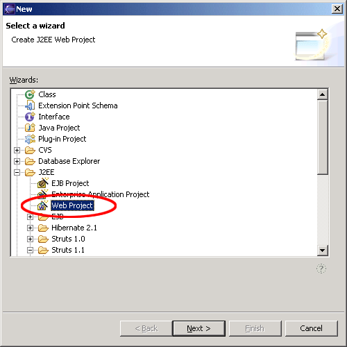 For now your project is a normal J2EE project, so we need to add the struts capabilityies. Right click on the project and add the capabilityies for struts with Add Struts Capabilityies.