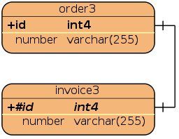 The samples above use a foreign key relation. Sometimes both tables should share the same primary key. In this case we need a relation to the primary key. The primary key of the second table is set to the same value as the table of the first table. This is managed by Hibernated.